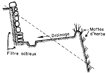 Inconvénients: cette technique est limitée à des sols profonds perméables et à des pentes de moins de 20 % (Tondeur, 1950).