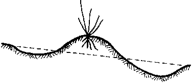 Les vertisols sont des sols très argileux et assez fertiles chimiquement, mais extrêmement difficiles à cultiver en saison des pluies. A cette époque en effet, ils sont boueux et manquent de portance. Par contre, il est possible de les labourer en saison sèche un mois après la fin des pluies et de dessiner sur les champs un ensemble de planches de 1,50 m de largeur séparées par des petits sillons en pente légères (0,5 %) qui vont ramener les eaux de drainage vers un exutoire et une citerne creusée dans la terre (figure 41). Ce système permet une double culture: d'une part, une culture de saison des pluies grâce au drainage permet le développement de sorgho sur des planches préparées et semées avant le début des pluies et d'autre part, après la saison des pluies, le sol s'est tellement gorgé d'eau, qu'il a une réserve d'environ 400 mm d'eau lorsque le vertisol a une épaisseur de 1 m. Le réservoir qui récupère les eaux de ruissellement contient quelques centaines de mètres cubes et ne peut servir qu'à produire une irrigation d'appoint sur une partie des champs pour compenser l'arrêt brutal en cours ou en fin de saison. Ce système, mis au point par l'ICRISAT dans la région de Hyderabad au centre de l'Inde a permis de doubler les revenus des paysans mais en exigeant d'eux un travail considérable à une époque où ceux-ci préfèrent concentrer leurs efforts sur les rizières de bas-fond. Ce type d'aménagement ne convient que pour les sols vertiques riches en argile gonflante: il ne convient pas pour les sols rouges ferrugineux tropicaux dont la réserve hydrique est trop faible.