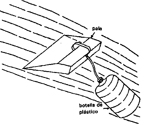 Existen diversos tipos de divisores que tienen partes móviles. Estos sólo son adecuados cuando existan una supervisión y un mantenimiento constantes, porque hay peligro de que esos divisores sean obturados por desechos o sufran una avería mecánica. Uno de los más conocidos es la rueda muestreadora Coschocton representada en la Fotografía 22. Se instala bajo el caudal de un aforador de garganta, como un aforador en H, y la fuerza del agua impulsa un tomador de muestras de ranura giratorio montado sobre un eje vertical. Una posible desventaja de este sistema es que el tamaño de la muestra no es constante en todos los caudales; un posible perfeccionamiento consiste en añadir un motor para dar una velocidad constante de rotación. Otro mecanismo es el balde volcador tal como se utiliza en algunos pluviómetros automáticos. Esto permite tomar una muestra cada vez que el balde se inclina; es asimismo sencillo incorporar un contador para registrar la frecuencia de las inclinaciones.