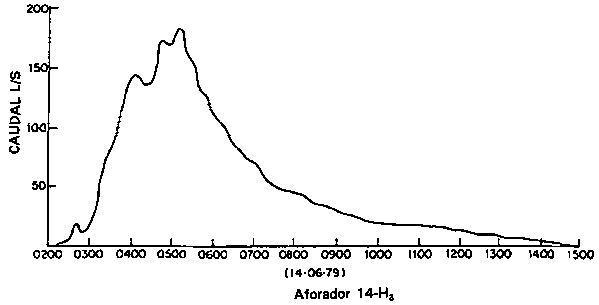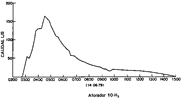 FIGURA 16 - Hidrogramas de tres cuencas hidrográficas en Sri Lanka (Hudson 1981a) a