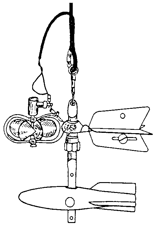 Una determinación más exacta de la velocidad se puede obtener utilizando un molinete. En la Figura 21 se ilustran los dos principales tipos de molinete. El de tipo de taza cónica gira sobre un eje vertical y el de tipo hélice gira sobre un eje horizontal. En ambos casos la velocidad de rotación es proporcional a la velocidad de la corriente; se cuenta el número de revoluciones en un tiempo dado, ya sea con un contador digital o como golpes oídos en los auriculares que lleva el operador. En las corrientes superficiales se montan pequeños molinetes sobre barras que sostienen operarios que caminan por el agua (Fotografía 23). Cuando hay que medir caudales de una avenida en grandes ríos, las lecturas se toman desde un puente o instalando un cable suspendido por encima del nivel máximo de la avenida; el molinete se baja por medio de cables con pesas para retenerlo contra la corriente del río.