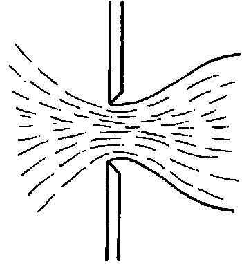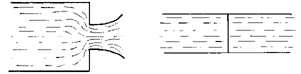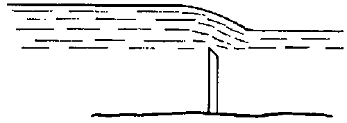 Los aforadores en H se suelen prefabricar con láminas de metal y pueden utilizarse en forma provisional empleando sacos de arena para formar un canal de acceso o también como instalaciones permanentes, utilizando hormigón o manipostería como se ilustra en la Fotografía 30. Al igual que con el canal de aforo Parshall, se pueden efectuar mediciones en un punto de la profundidad del caudal a partir de una plancha de medición situada en el muro del canal, o en un registro constante a partir de un registrador de un flotador. En todos los aforadores existe una curva del cono de depresión, es decir, el nivel de superficie desciende cuando el agua se acelera en el punto de descarga; es esencial, por consiguiente, que la medida de la profundidad del caudal se efectúe exactamente a la distancia especificada aguas arriba desde la sección de control.