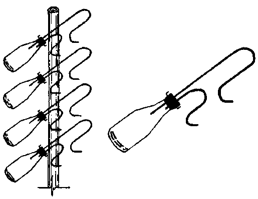 FIGURA 41 - Dispositivo para muestreo simultáneo en la superficie de la corriente y en profundidad (de Pereira y Hosegood 1962)
