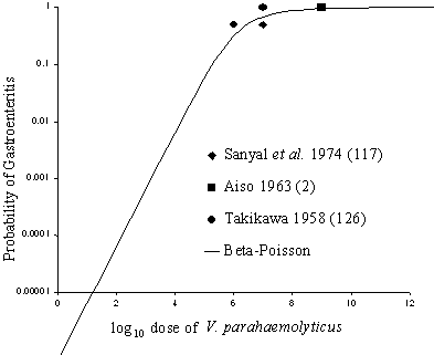 Il y a eu une discussion au sujet du rôle des anti-acides dans l'infection à V. parahaemolyticus. On ne sait pas si des données sur l'utilisation des anti-acides étaient disponibles dans de nombreux pays (en Australie, on pense qu'environ 10% de la population est traitée par réducteurs d'acidité prescrits). Ceci peut devoir être pris en compte également; toutefois, l'évaluation de l'exposition considère actuellement l'effet des populations sensibles eu égard aux séquelles graves survenus après que l'infection a eu lieu mais pas en ce qui concerne le début de l'infection.