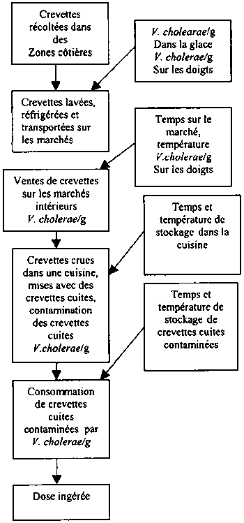 FIGURE 6.12 Modèle pour l'évaluation de l'exposition liée à V. cholerae dans les crevettes destinées à la consommation dans les pays en développement
