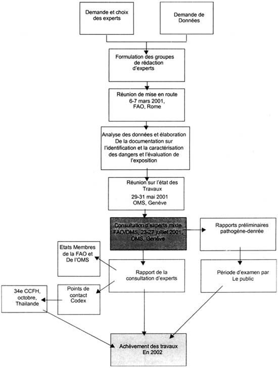 Etapes de la mise en oeuvre des activités conjointes FAO/OMS sur l'évaluation du risque microbiologique dans les aliments.