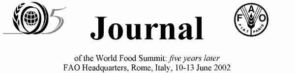 As decided by the Hundred and Twentieth Session of the FAO Council (Rome, 18-23 June 2001), the format of the World Food Summit: five years later will provide for sequential statements by Heads of country delegations in the Plenary Hall from 10 to 13 June 2002.