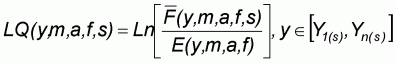 The partial log-catchability time series LQ(y, m, a, f, s) may then be derived from the equation: