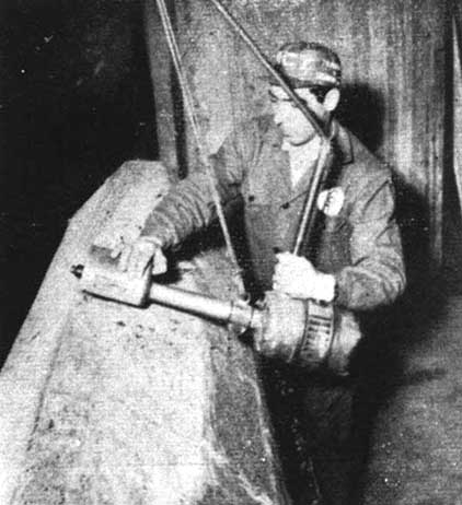 Ecorceuse portative. - Fraise coupante entraînée par un moteur à essence ou électrique, manuvrée à la main. Diamètre minimum et maximum des grumes admises: 100-250 mm. Longueur minimum et maximum des grumes: 0,70-5 m. Système d'alimentation à main. Moteur électrique ou à essence de 2,5 cv.