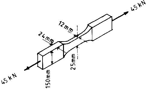 Consider a steel bar which is thinner at the middle of its length than elsewhere, and which is subject to an axial pull of 45kN.