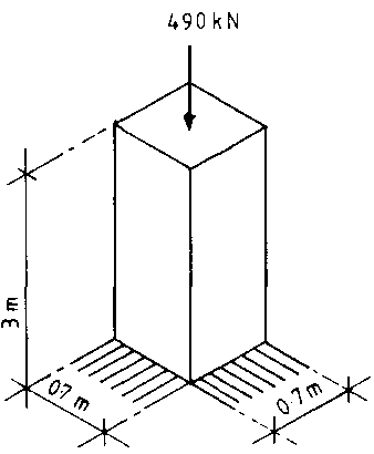 Stress = s c = 490kN / 0,49m2 = l000kN/ m² or 1 N/mm²