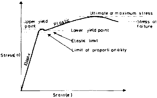 Figure 4.1 Behaviour of mild-steel rod under tension.