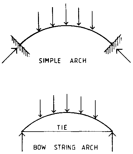 The arch can be shaped such that, for a particular loading, all sections of the arch are under simple compression with no bending. Arches exert vertical and horizontal thrusts on their supports, which can prove troublesome in the design of supporting walls. This problem of horizontal thrust can be removed by connecting a tension member between the support points.