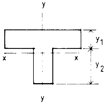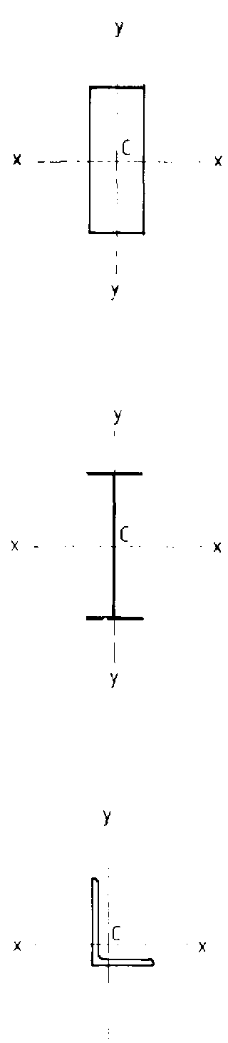 It is usual to consider the reference axes of structural sections as those passing through the centroid. In general, the x-x axis is drawn perpendicular to the greatest lateral dimension of the section, and the y-y axis is drawn perpendicular to the x-x axis, intersecting it at the centroid.