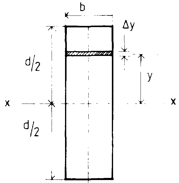 Consider a rectangle and let it consist of an infinite number of strips. The moment of inertia about the x-x axis of such a strip is then the area of the strip multiplied by the square of the perpendicular distance from its centroid to the x-x axis, i.e.: b x y x y2