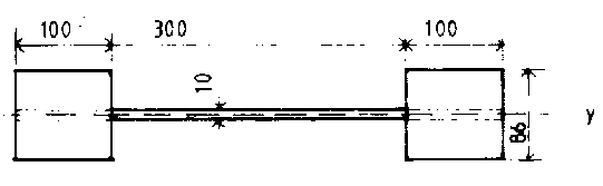 If the bar were to fail in tension, it would be due to breaking where the amount of material is a minimum. The total force tending to cause the bar to fracture is 45kN at all cross sections, but whereas the effect of the force is distributed over a cross-sectional area of 1200mm² for part of the length of the bar, it is distributed over only 300mm² at the middle position. Thus, the tensile stress is greatest in the middle and is: at = 300 2 = 15ON/mm²