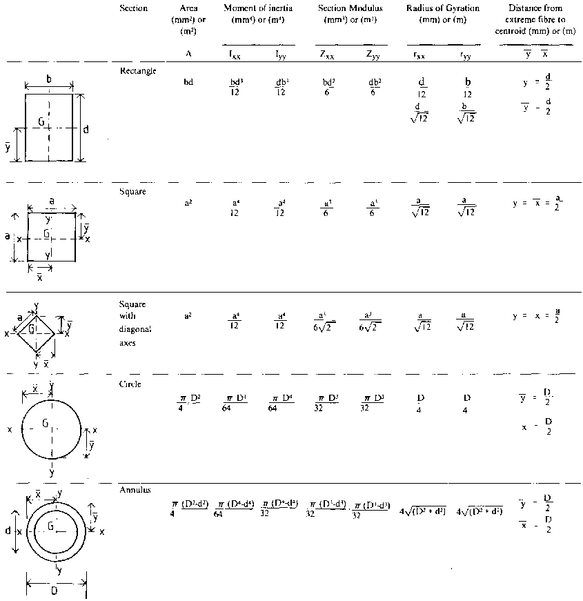 It will be necessary, for example, when designing beams in bending, columns in buckling, etc., to refer to a number of basic geometrical properties of the cross sections of struc tural members.