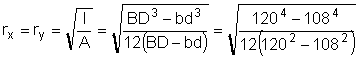 Calculate the safe load on a hollow square steel stanchion, whose external dimensions are 120 x 120mm. The walls of the column are 6mm thick and the allowable compressive stress ace = 150N/mm². The column is 4 metres high and both ends are held effectively in position, but one is also restrained in direction.
