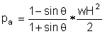 This gives the approximate horizontal resultant force on a vertical wall face, when retaining material that is level with the top of the wall. If the surface of the retained material is sloping up from the wall at an angle equal to its angle of repose, a modification is required.