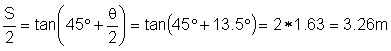 S/2 tan (45° + q / 2 ) for a square bin of side length S.