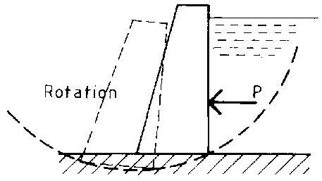 4 Rotational Slip - The wall and a large amount of the retained material rotate about some point O. if the shear resistance developed along a circular arc is exceeded. The analysis is too complex to include here.