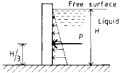 The pressure at a given depth acts equally in all directions, and the resultant force on a dam or wall face is normal to the face. The pressure due to the liquid can be treated as a distributed load with linear variation in a triangular load form, having a centroid twothirds of the way down the wet face.