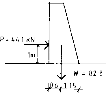 Overturning moment about D = 44.1 x 1 = 44.1 kNm