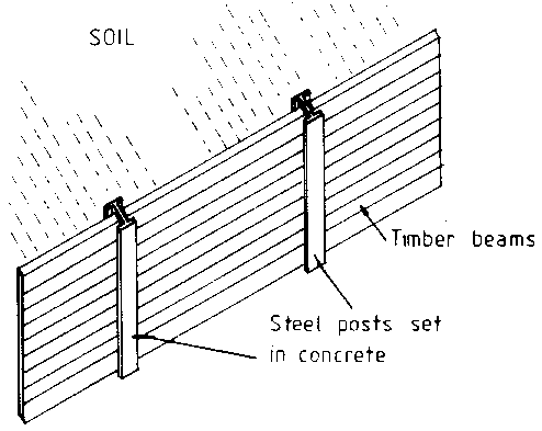 If steel posts are placed at 2.5m centres, each post can be approximated to a vertical cantilever beam 2.5m long carrying a total distributed load of 10.1 x 2.5 = 25.25kN of linear variation from zero at the top to a maximum at the base. The steel post and foundation concrete must be capable of resisting the applied load, principally in bending but also in shear.