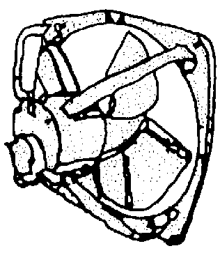 Centrifugal (radial-flow)fans are used for ducted installations or where air must be moved through a product such as grain or potatoes. The blades on the blower may be radial, e.g., straight from the shaft, curved forward in the direction of rotation, or curved backward opposite to the direction of rotation. The latter can achieve the highest efficiencies under high-pressure performance and are most suitable for agricultural applications. The most important attribute of the backward-curve blower is its nonoverloading characteristic. Both the radial and forwardcurved types require their greatest power input when air flow is cut off. An air blockage therefore, is likely to overload the motor and cause damage. Figure 7.7.