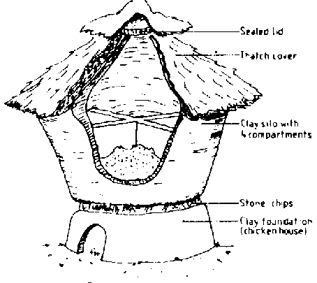 Many traditional stores perform excellenctly in their appropriate climatic conditions and others can be made to do so with minor changes. Efforts should be made to prevent cracks in the surface of the walls and to seal the entrance to the bin. This can be done for instance by adding lime or cement to the mud (i.e. a stabilized soil technique) or by incorporating an airtight lining (e.g. plastic) in the wall.