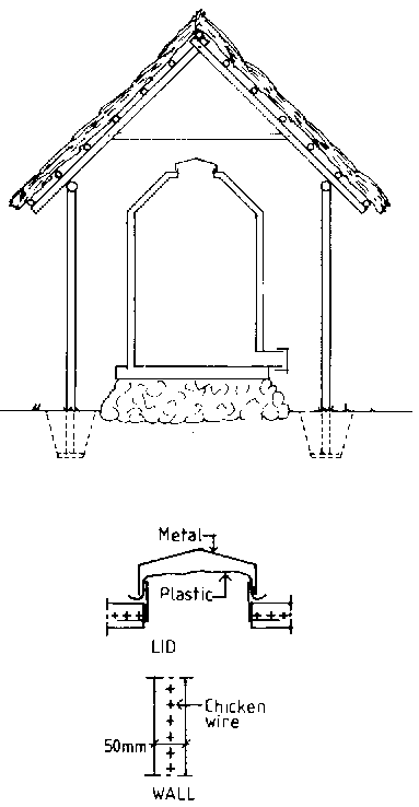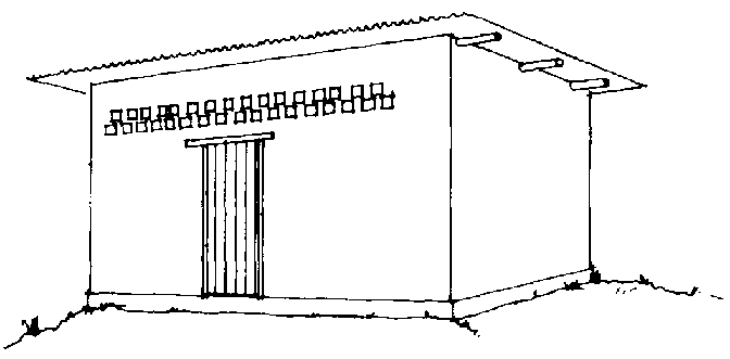 Whatever the size, the floor should be of good quality concrete, the door should fit tightly to prevent entry of rodents, and ventilation openings should be screened to keep out birds. The gaps between the wall and the roofing sheets must be closed for instance with cement.