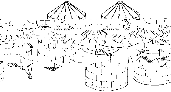 Figure 9.21 Silo built of bricks laid radially (gravity wall).