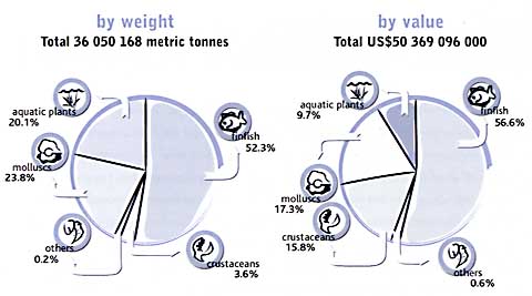 volume, but in terms of value the giant tiger prawn is the market leader with a 1997 production value of US$3.5
