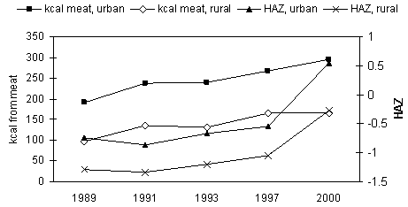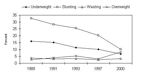 and mean height-for-age Z scores, 1989 to 2000