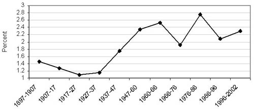 The government adopted an Arab socialist orientation during the period 1960 to 1970, which resulted in a fairly closed economy until 1974, when Egypt moved to an open market economy. The economy expanded rapidly during the 1990s, with gross national product (GNP) almost doubling between 1993 and 1997 and the rate of inflation decreasing to 3.6 percent (EDHS, 2000).